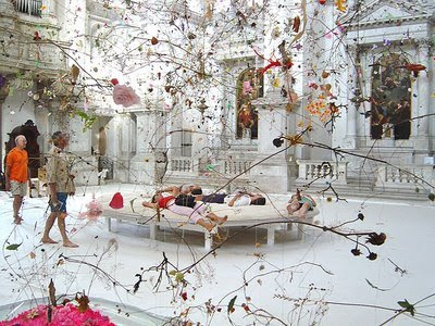 I went to the K bar last night and enjoyed one too many k bar martini's. So instead of hiding under the covers, I am working away while dreaming of my headache subsiding. I really wish that I could recover on the bed in this environment instead! A fairytale filled room, with a huge bed to cuddle up on, in Venice of all places.